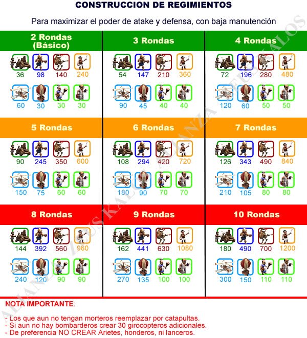 Les mostare a todos como se debe armar una catidad respetable.. de soldados.. para la cual les dara mas posibilidades de obtener una victora en las batallas que libren, se resumen en el cuadro que se muestra en la imagen